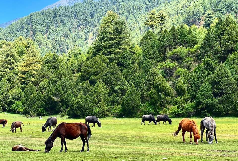 म्याग्दी । समथर फाँट र भिरालो पाखामा फुलेका रङ्गीबिरङ्गी फूल, चरन क्षेत्रमा रमाइरहेका घरपालुवा जनावरको बथान, पहाडका टाकुराबाट पृष्ठभूमिमा देखिने हिमाल, बादल, घाम र आकाशे पानीको लुकामारी । कोलाहलमुक्त वातावरण, शीतल हावापानी, चराचुरुङ्गी र जनावरहरुको आवाज ।