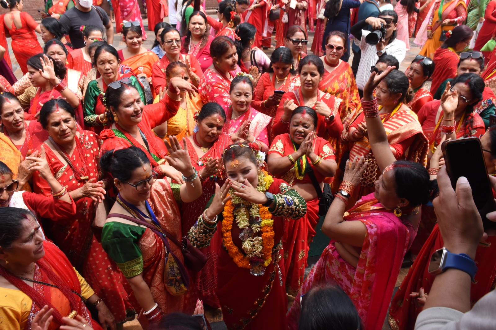 पशुपतिनाथ मन्दिरमा पूजा गर्ने र परिसरमा नाचगान गर्नेहरुको घुइँचो लागेको छ। परिवार र साथीसंगीहरुसँगको भेटघाटको अवसर जुराइदिने पर्वको यो विशेष क्षणलाई स्मरणीय बनाउन कसलाई मन पर्दैन र त्यसैले उनीहरु एकल र सामूहिक फोटो खिच्दै खिचाउँदै रमाइलो गरिरहेका छन्।