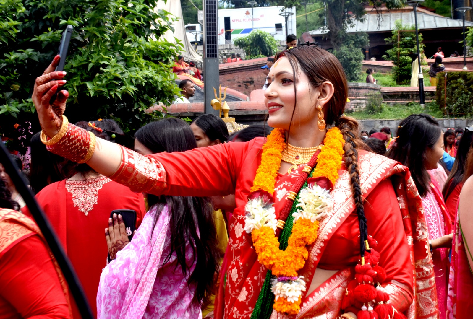 पशुपतिनाथ मन्दिर परिसरमा तीजका व्रतालुहरुले सेल्फी खिचे, नाचगान गरे र अनि एकअर्कालाई शुभकामना साटासाट गरेका छन्। यस अवसरमा चर्चित नायिक सुरक्षा पन्तदेखि सर्वसाधारण महिलाहरु पशिुपतिमा पूजा आजा गर्न पुगेका छन्।